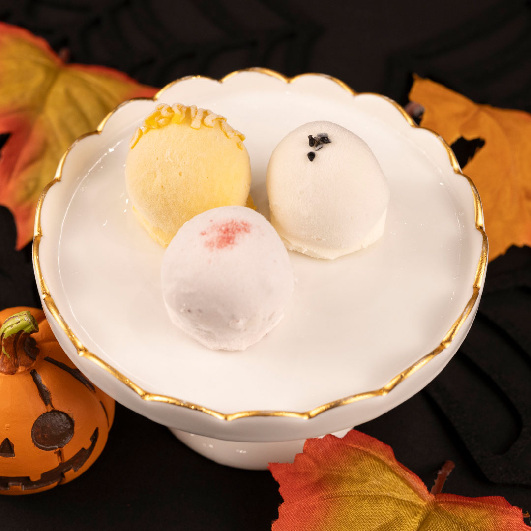 ハロウィンの呪文で現れたのは、可愛いおばけにジャックオランタン、コウモリたち。