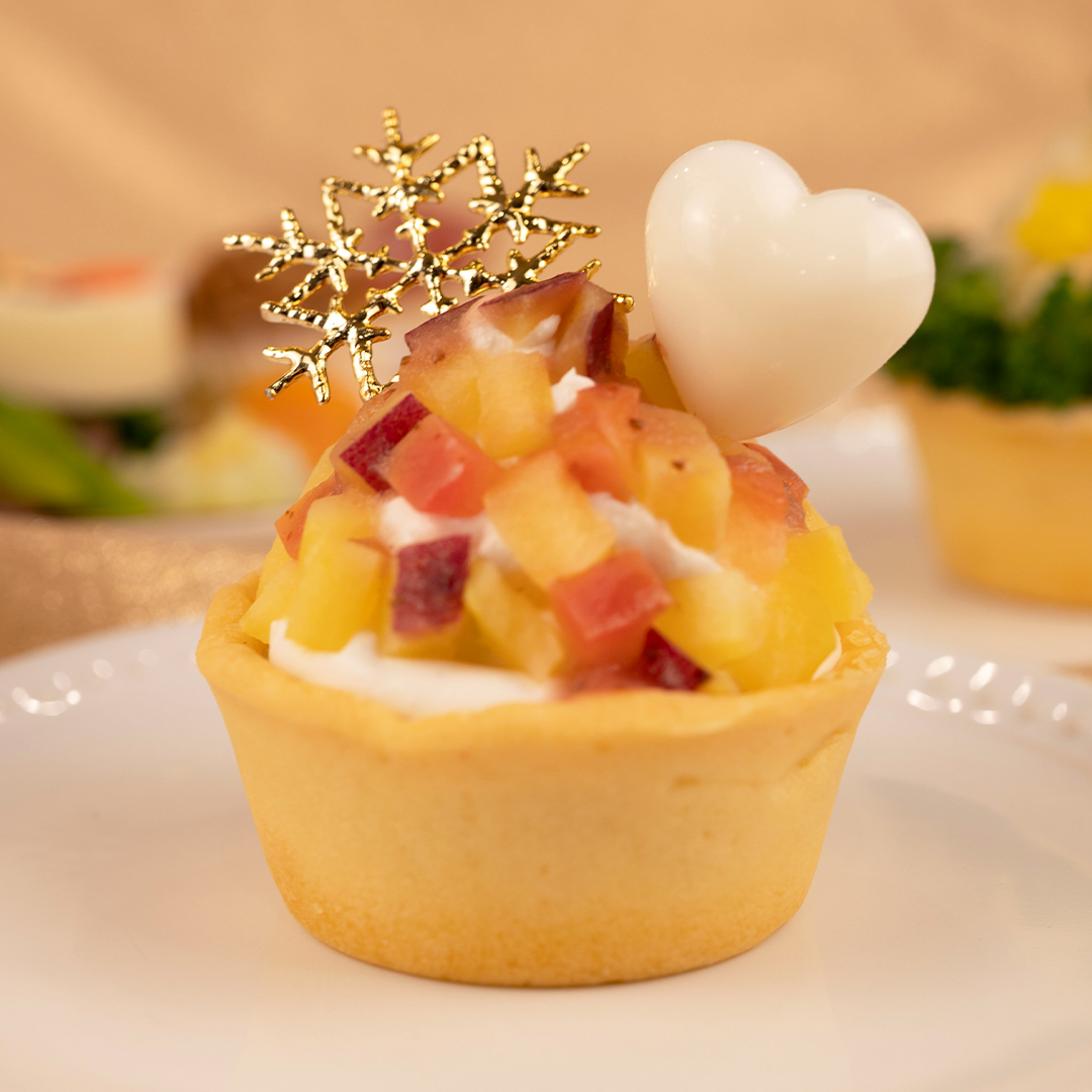 きらめく宝石やオーナメントを一面の雪に敷き詰めたような華やかなタルト。